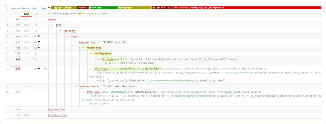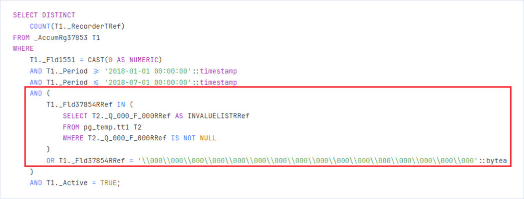 В таком случае запрос сможет использовать индекс и соответственно выполнится почти мгновенно. По условиям теста нельзя дорабатывать код 1С, поэтому пришлось обучить СУБД Tantor Postgres при планировании запроса автоматически переписывать текст запроса перед исполнением, если он подходит под указанный шаблон. Коллеги из «Тантор лабс» успешно справились с этой задачей, в результате чего запрос вместо 5 секунд выполнился за 1 мс, т.е. ускорение в 5 тысяч раз!