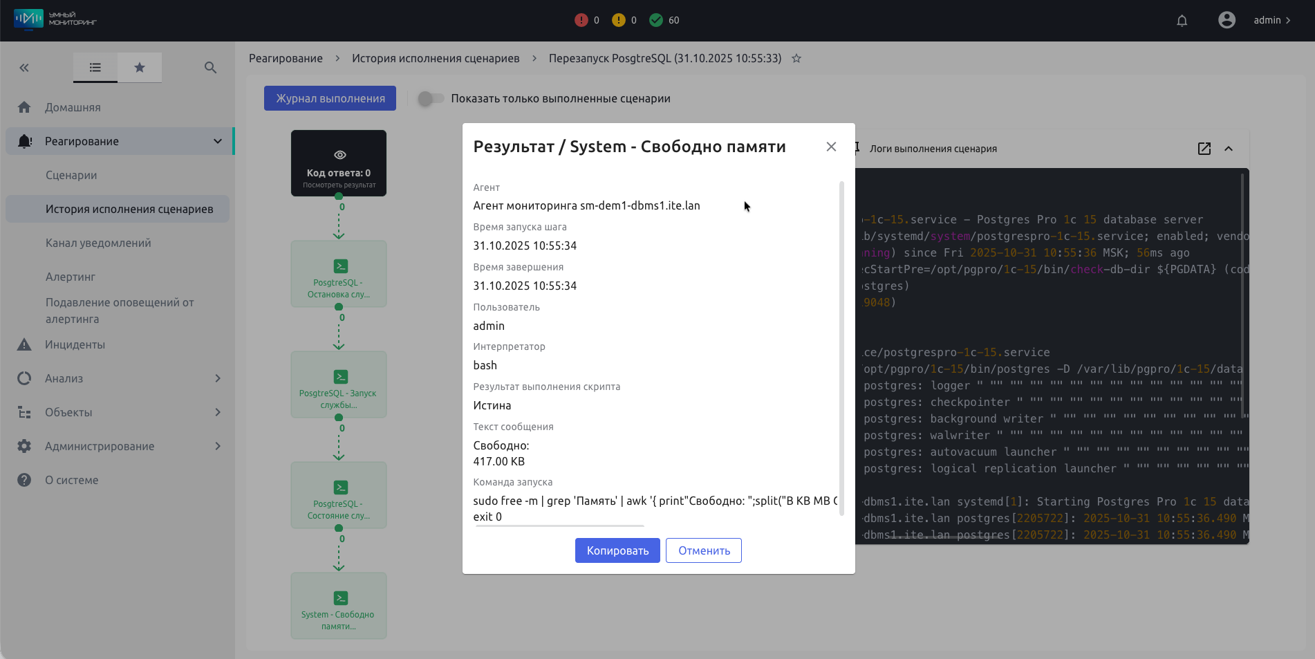В «Умном мониторинге» эти задачи решаются силами готовых скриптов и сценариев, которые находятся в панели управления. С их помощью администратор может буквально одним кликом: